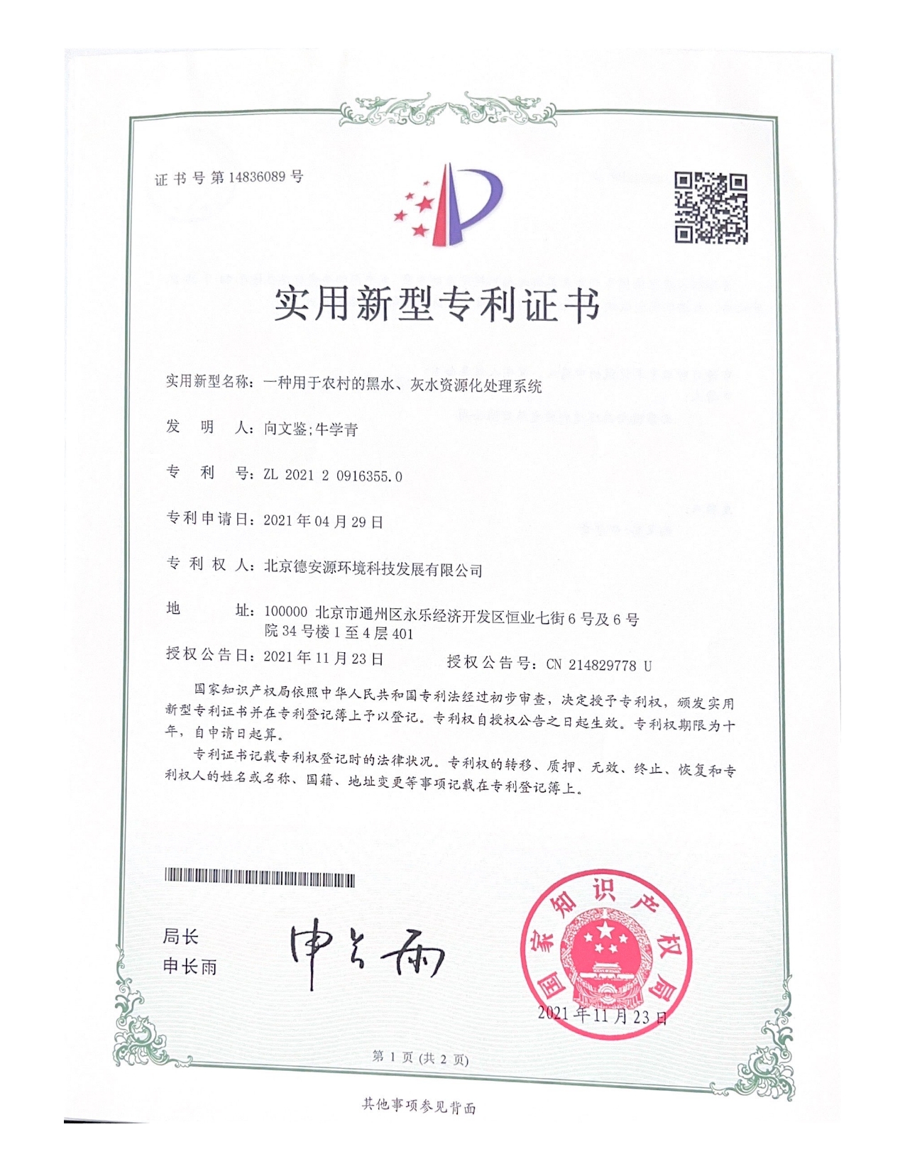 一種用于農村的黑水、灰水資源化處理系統