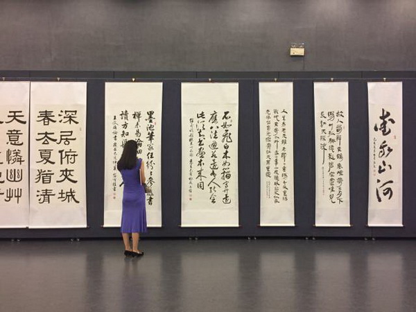 據了解,本次展覽是香港書法家協會第二次到內地舉辦大規(guī)模書法展,展出的160余幅作品都是書法家發(fā)自內心的豪情凝聚而成的翰墨。